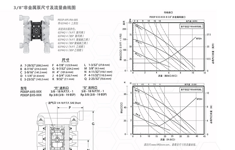ARO氣動隔膜泵非金屬型泵型號大全: