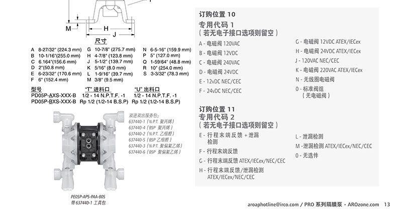 ARO氣動隔膜泵非金屬型泵型號大全: